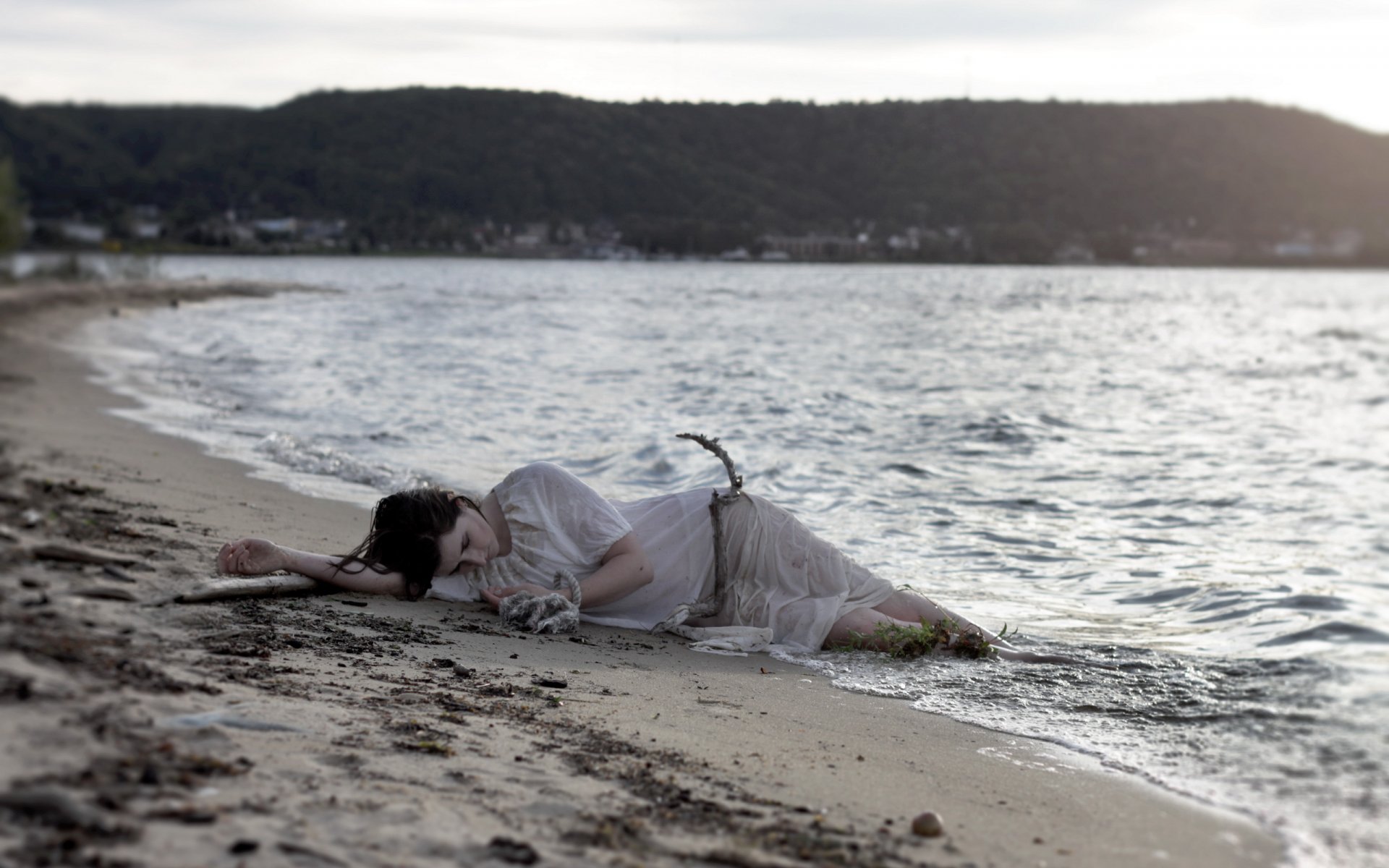 Crosotka sur une photo grise avec un regard sexy se trouve sur le lit
