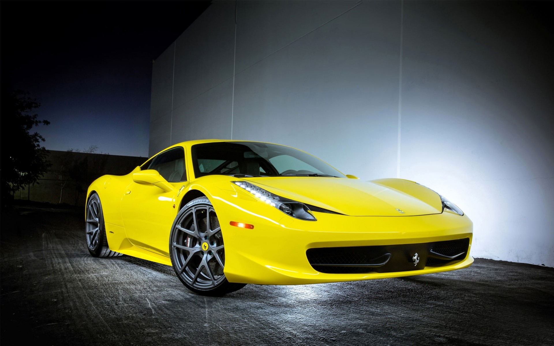 Porsche verte avec inserts noirs sur le fond d'un bâtiment moderne dans les rayons du soleilPorsche verte avec inserts noirs sur le fond d'un bâtiment moderne dans les rayons du soleil
