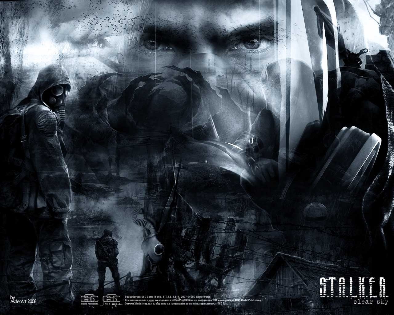 Deux personnes sur le fond de la zone d'exclusion à pripyat du jeu stalkerDeux personnes sur le fond de la zone d'exclusion à Pripyat du jeu Stalker