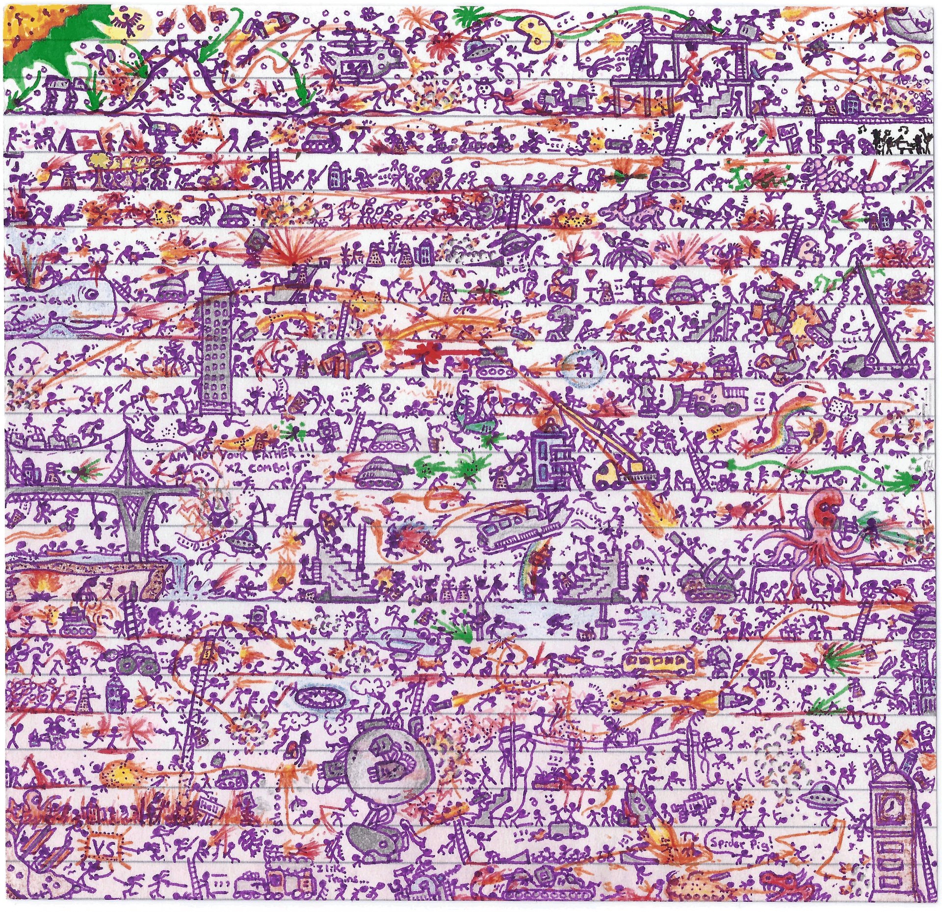 Dessin sombre dans le style de l'anime avec des hiéroglyphes rouges de sang