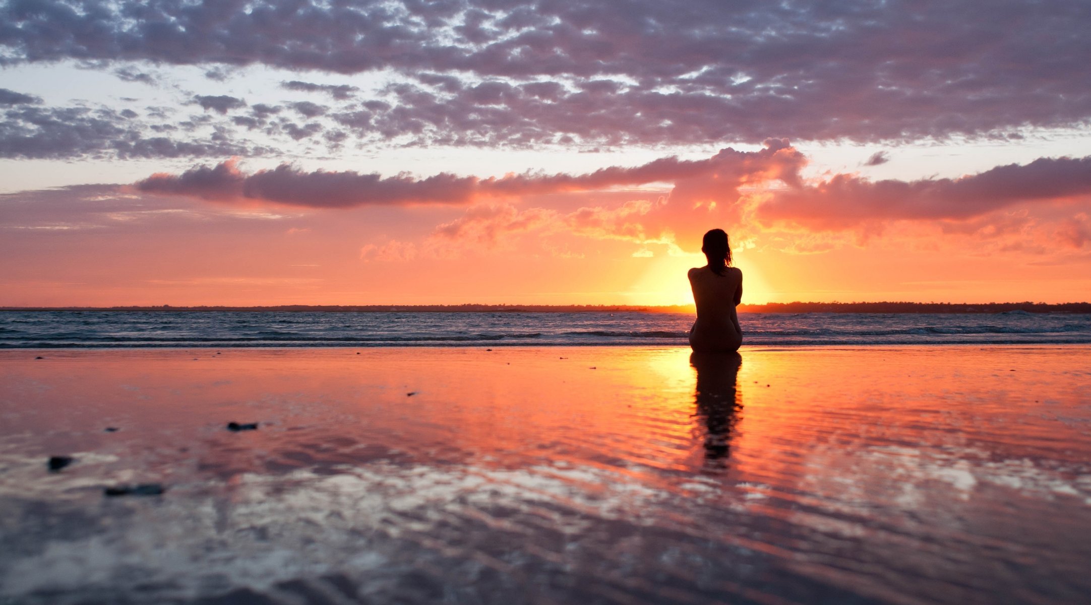 Fille sur la rive en regardant le soleil couchant