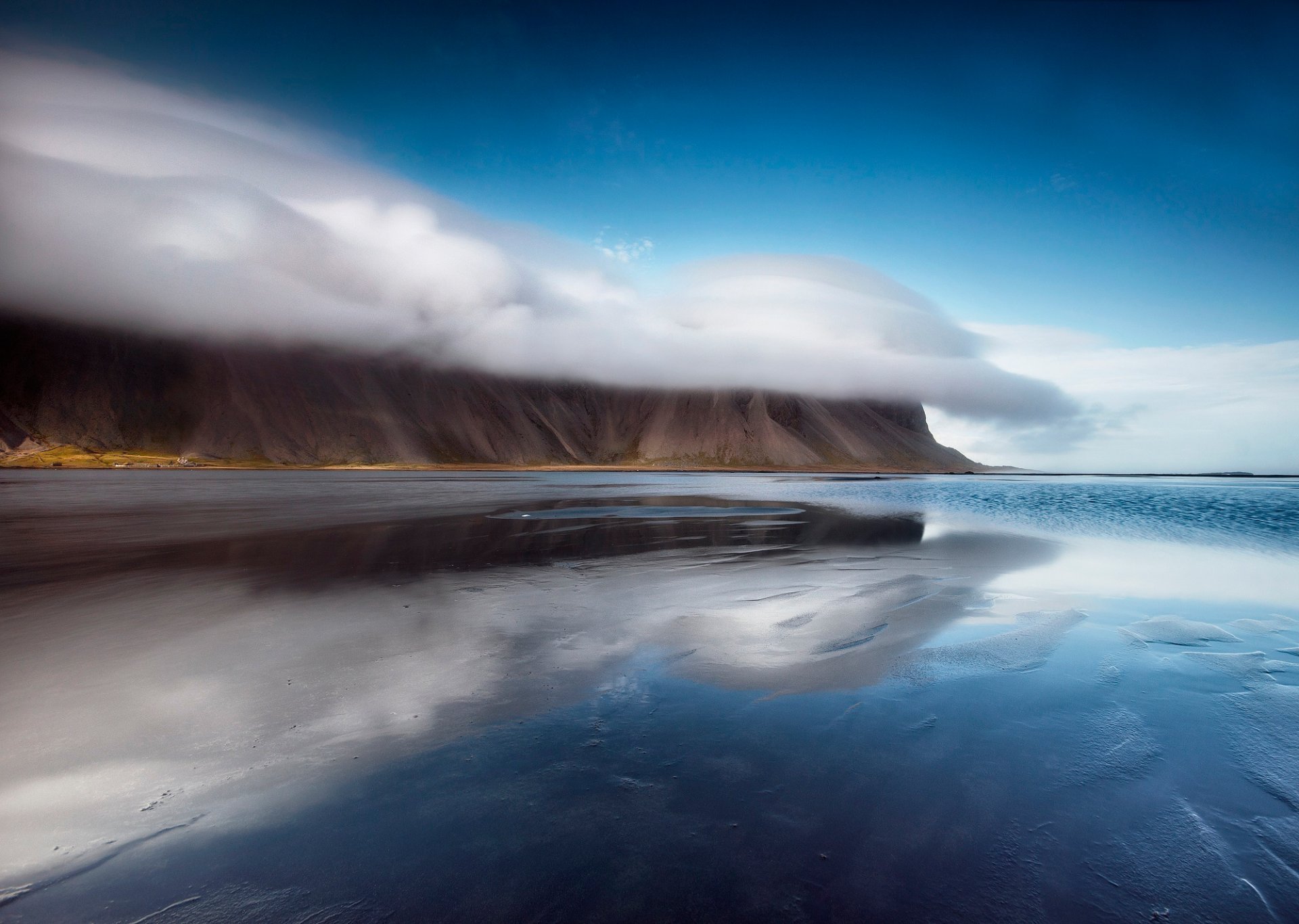Nuages portant un chapeau se trouvent sur les montagnesNuages portant un chapeau se trouvent sur les montagnes