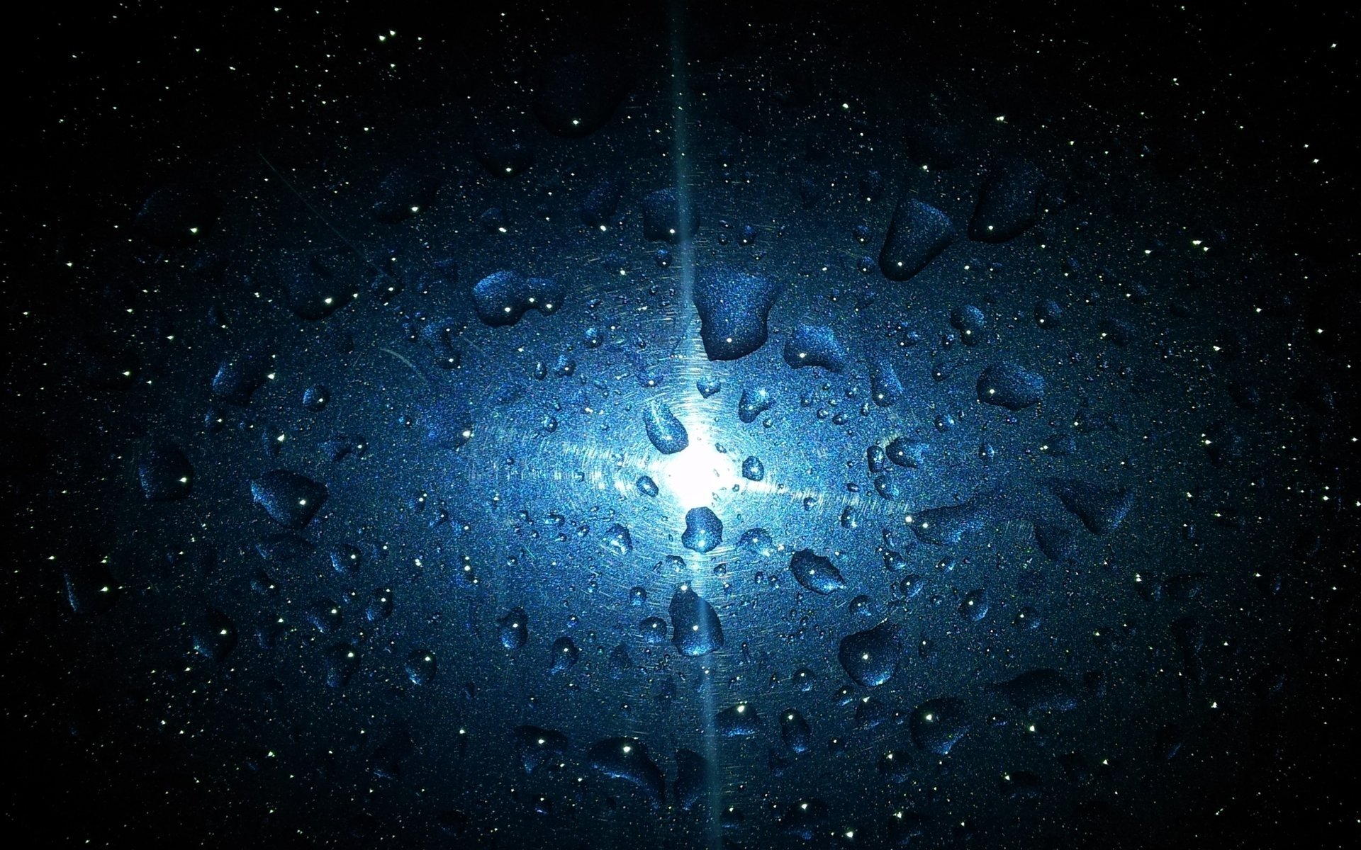 La lumière est réfléchie par points à partir d'une surface sombre avec des gouttes de liquide