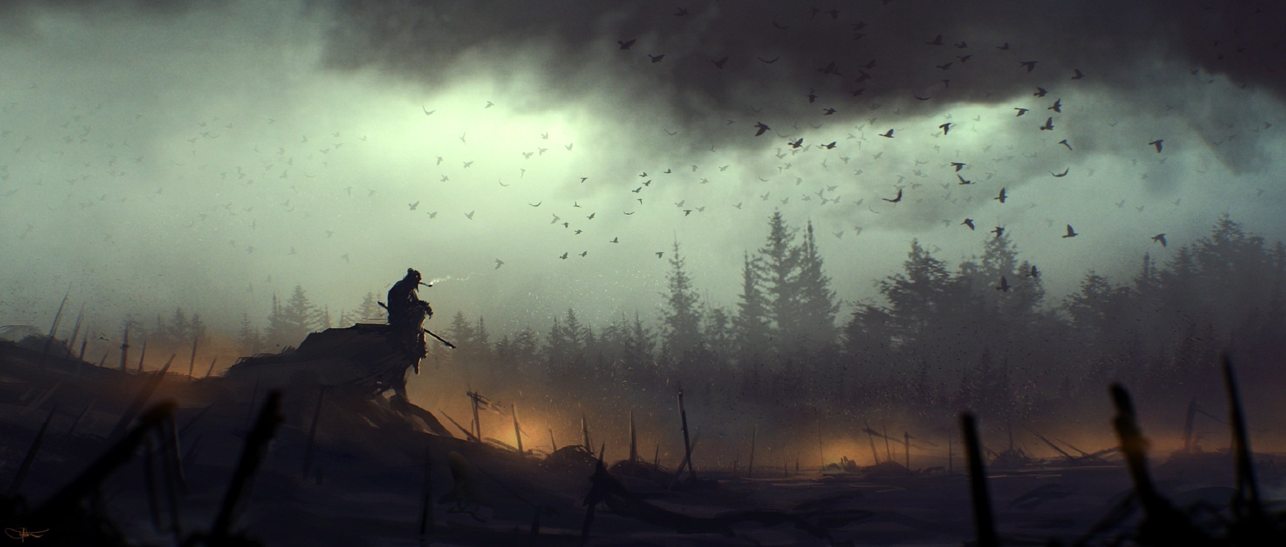 Mage sur le champ de bataille avec le dragon et les guerriers sur le terrainMage sur le champ de bataille avec le dragon et les guerriers sur le terrain