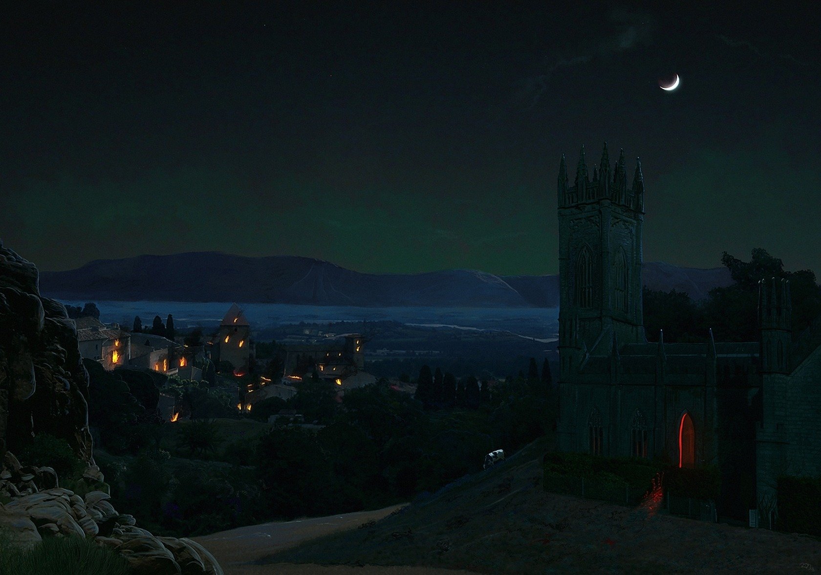 La nuit est tombée sur la ville dans les montagnesLa nuit est tombée sur la ville dans les montagnes