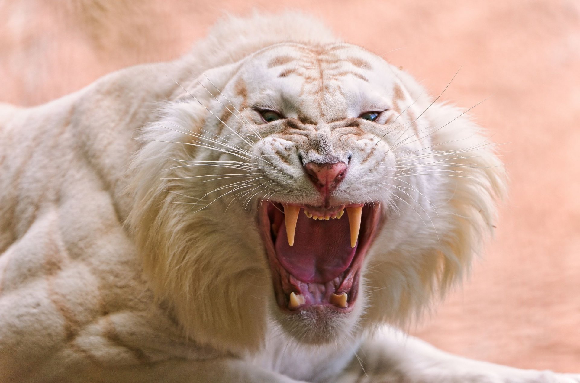 Tigre blanc agressif avec un sourire