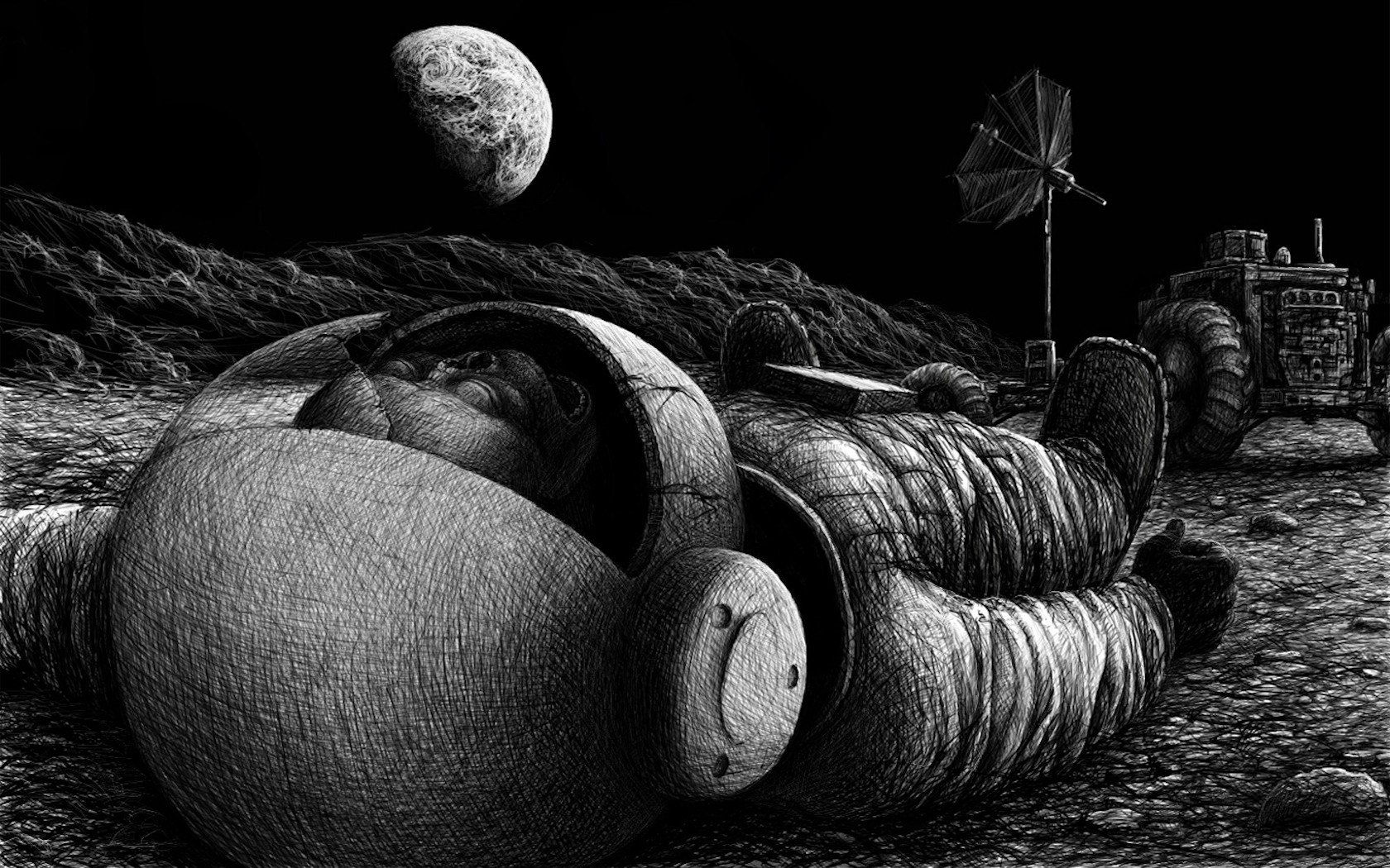 Dessin représentant un astronaute chien à la recherche d'un OS