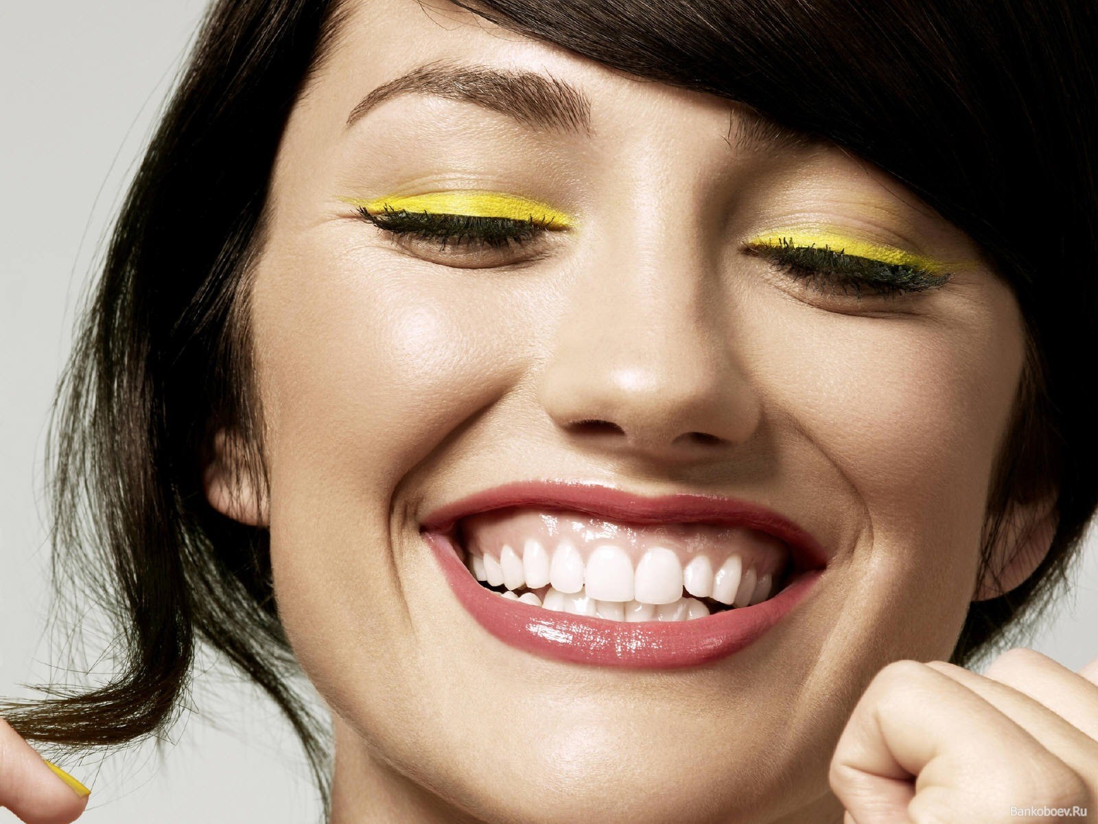 Sourire blanc comme neige d'une belle fille