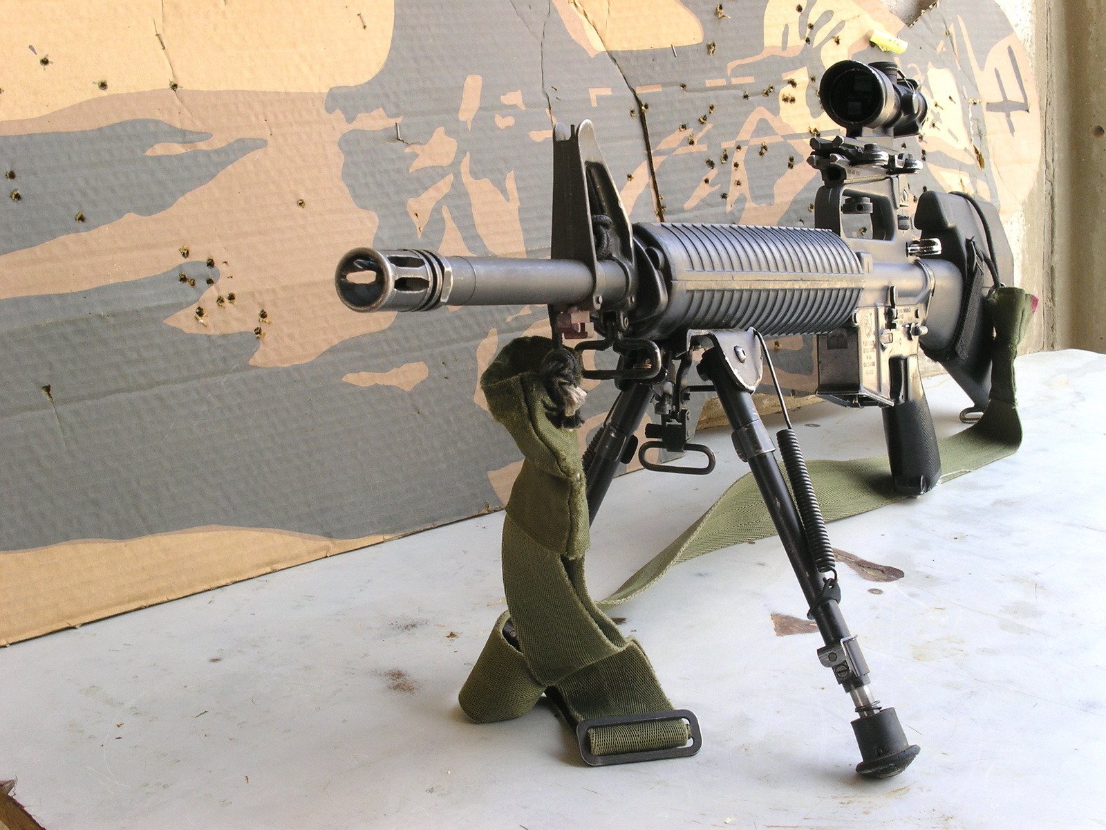 Fusil de sniper sakotrg - 22 avec silencieux sur l'herbeFusil de sniper sakotrg - 22 avec silencieux sur l'herbe