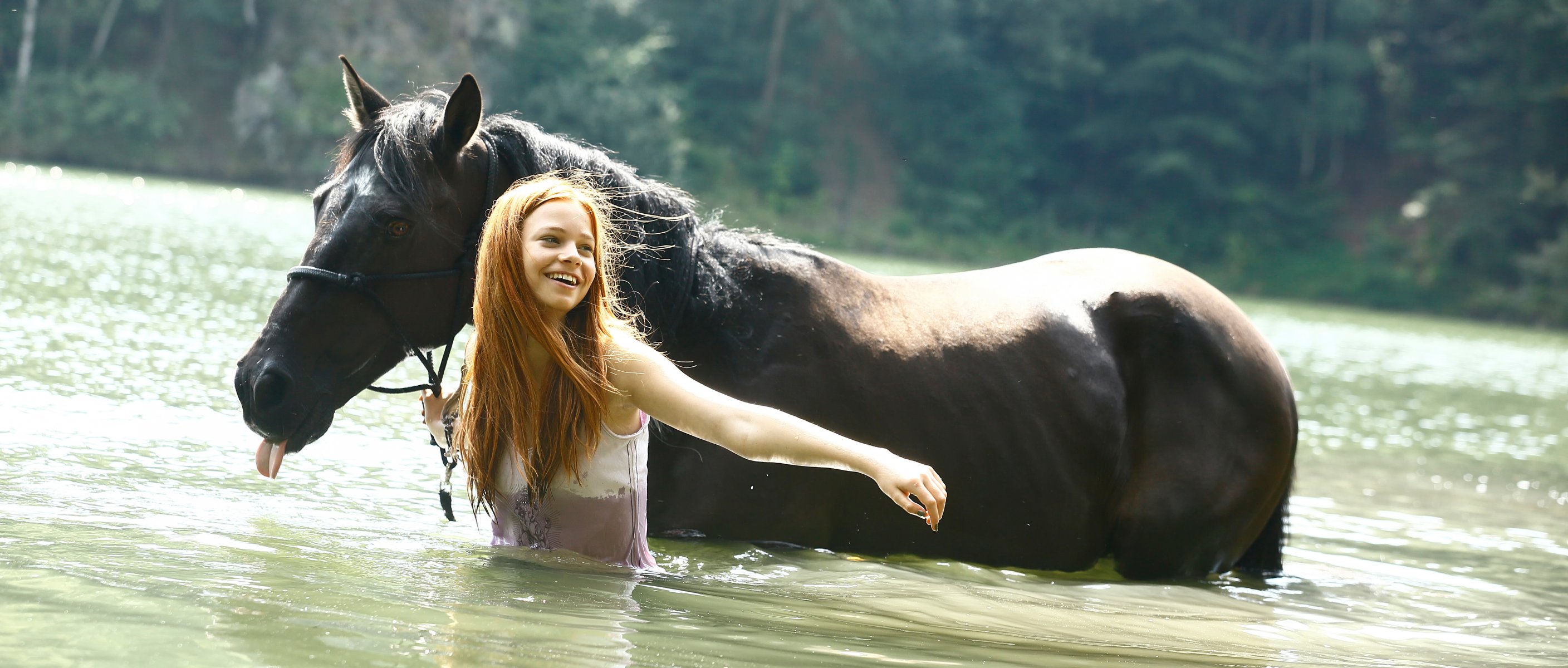 Brune nue avec des mamelons qui sortent s'est ouverte sur le fond des vagues de la mer