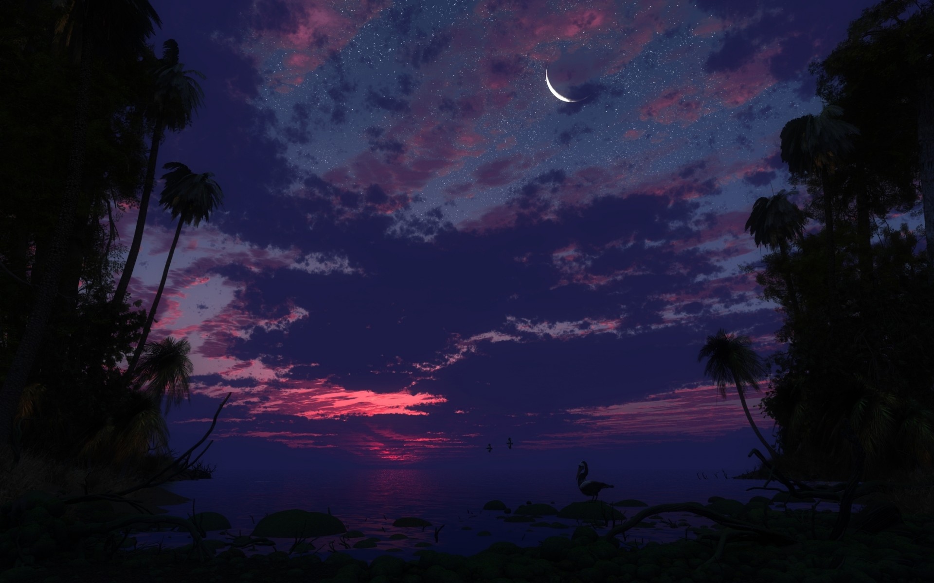 Palmiers dans la nuit vue de dessous