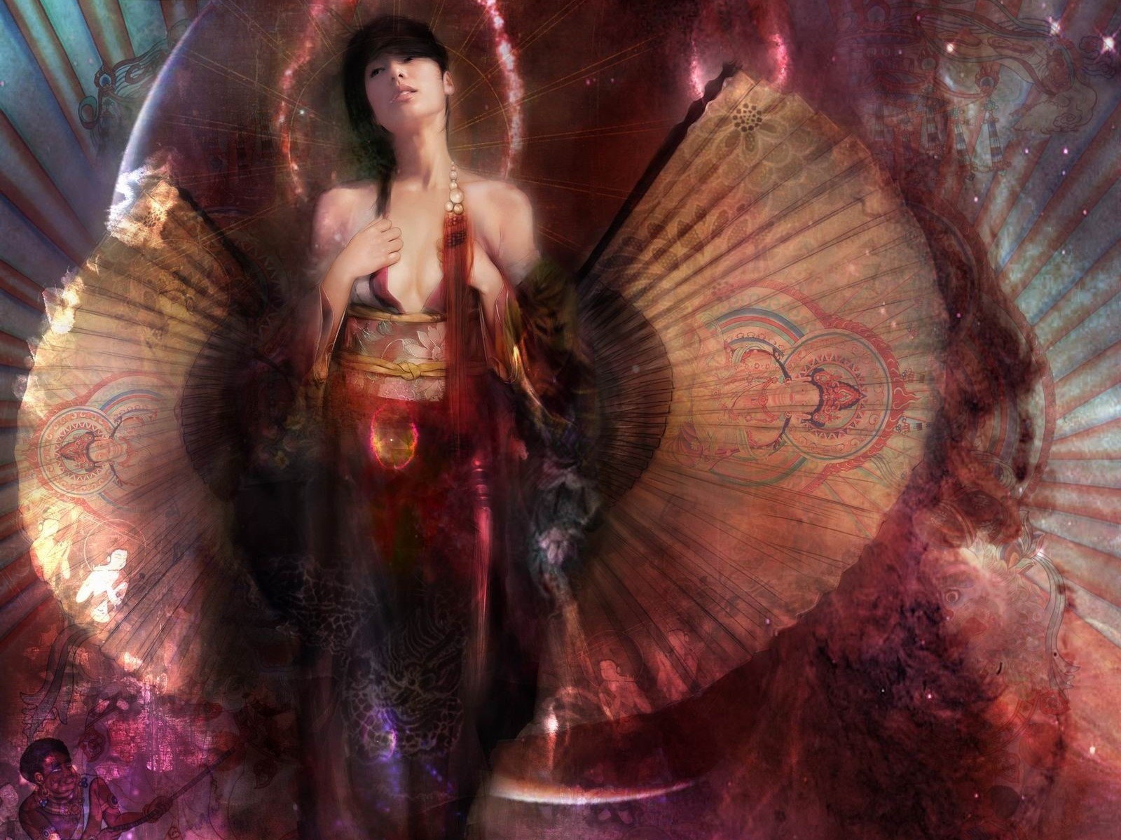 Fille asiatique avec un beau ventilateur
