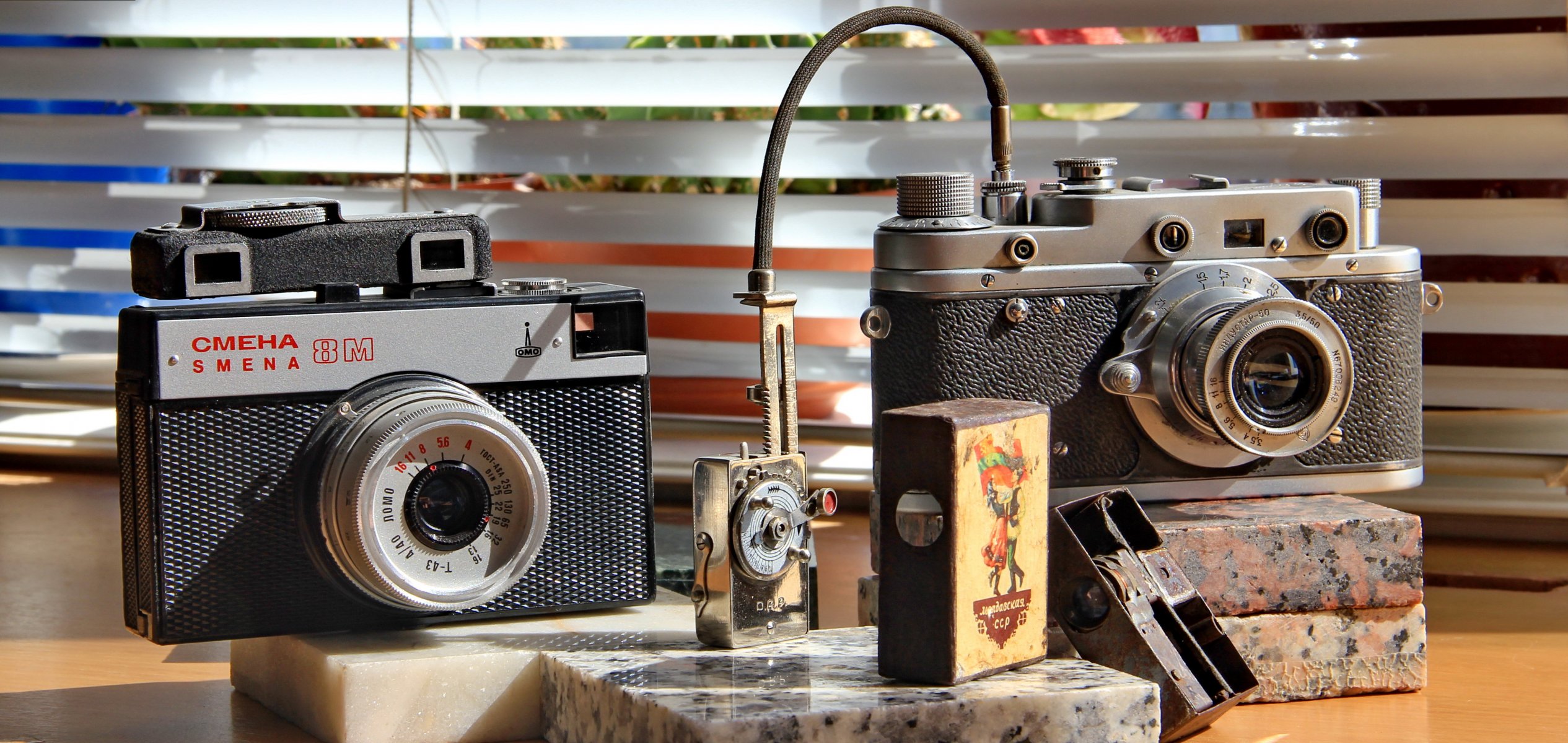 Le légendaire appareil photo soviétique et la boîte et-sous elle